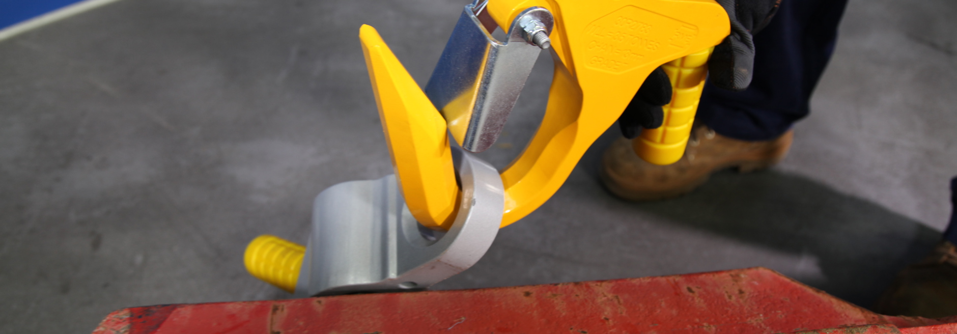 Se necesitan para bloquear las Tijeras O-Zone. El exclusivo mango del gancho mantiene los dedos alejados del punto donde se unen el gancho y la herramienta. Los ganchos con sus cadenas, se adaptan entre los ganchos de izaje de la MLH/Manipuladora de revestimientos del molino o la Máquina para Revestir Molinos (MRM) RUSSELL y las herramientas de izaje de revestimientos O-ZONE.